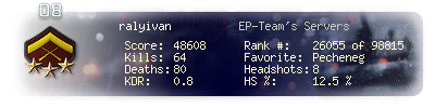 | Kills | 64 | Deaths | 80 | Kill / Death | 0.8 |