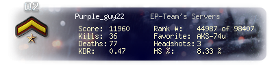 | Kills | 36 | Deaths | 77 | Kill / Death | 0.47 |