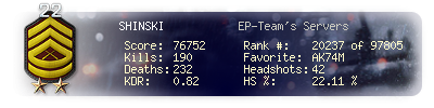 Kills | 190 | Deaths | 232 | Kill / Death | 0.82 |