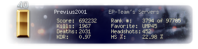 Suicides | 31 | Headshots | 452 | Headshot / Kill | 22.98 % |
