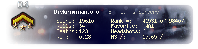 | Kills | 34 | Deaths | 123 | Kill / Death | 0.28 |