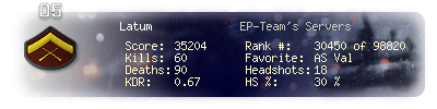 | Kill-streak | 7 | Death-streak | 8 | Team Kills | 0 |