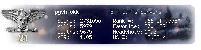 Kills | 5979 | Deaths | 5675 | Kill / Death | 1.05 |