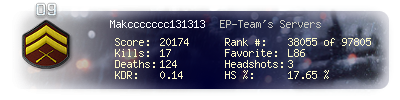 Kills | 17 | Deaths | 124 | Kill / Death | 0.14 |