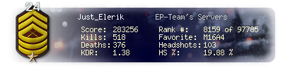 Kills | 518 | Deaths | 376 | Kill / Death | 1.38 |