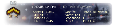 | Kill-streak | 3 | Death-streak | 8 | Team Kills | 0 |