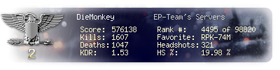 | Kills | 1607 | Deaths | 1047 | Kill / Death | 1.53 |