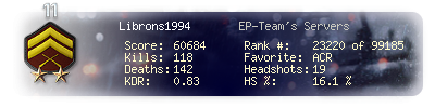 | Kill-streak | 4 | Death-streak | 6 | Team Kills | 0 |