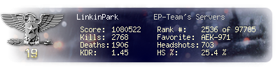 Kills | 2768 | Deaths | 1906 | Kill / Death | 1.45 |