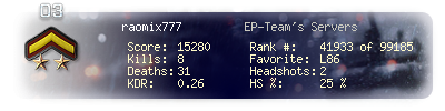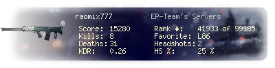| Kill-streak | 1 | Death-streak | 8 | Team Kills | 0 |