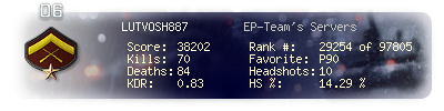 Kills | 70 | Deaths | 84 | Kill / Death | 0.83 |