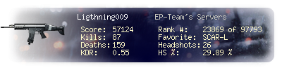 Suicides | 0 | Headshots | 26 | Headshot / Kill | 29.89 % |