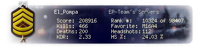 | Suicides | 0 | Headshots | 112 | Headshot / Kill | 24.03 % |