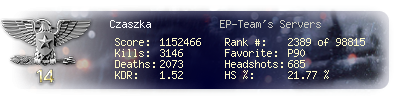 | Kills | 3146 | Deaths | 2073 | Kill / Death | 1.52 |