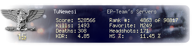 | Kills | 1493 | Deaths | 308 | Kill / Death | 4.85 |