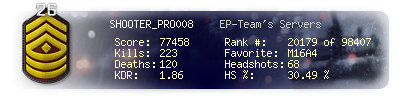 | Kill-streak | 10 | Death-streak | 5 | Team Kills | 0 |