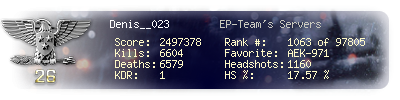 Kills | 6604 | Deaths | 6579 | Kill / Death | 1 |