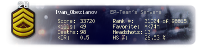 | Kill-streak | 4 | Death-streak | 9 | Team Kills | 0 |