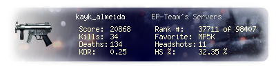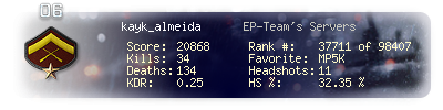 | Kills | 34 | Deaths | 134 | Kill / Death | 0.25 |