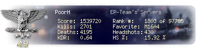 Kills | 2701 | Deaths | 4195 | Kill / Death | 0.64 |