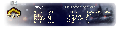 | Kills | 35 | Deaths | 94 | Kill / Death | 0.37 |