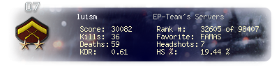 | Kill-streak | 3 | Death-streak | 17 | Team Kills | 0 |