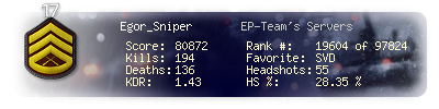 Suicides | 2 | Headshots | 55 | Headshot / Kill | 28.35 % |