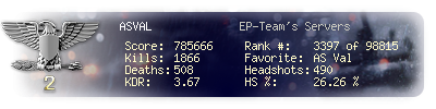 | Suicides | 7 | Headshots | 490 | Headshot / Kill | 26.26 % |