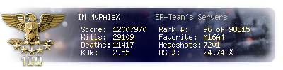 | Kills | 29109 | Deaths | 11417 | Kill / Death | 2.55 |