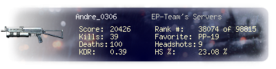 | Kills | 39 | Deaths | 100 | Kill / Death | 0.39 |