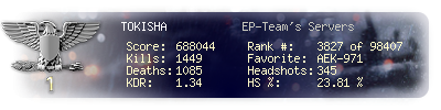 | Kills | 1449 | Deaths | 1085 | Kill / Death | 1.34 |