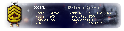 Suicides | 7 | Headshots | 63 | Headshot / Kill | 30.14 % |