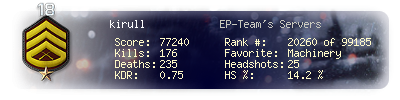 | Kill-streak | 8 | Death-streak | 9 | Team Kills | 0 |