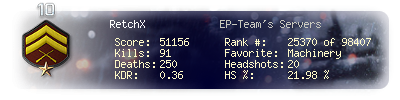 | Kills | 91 | Deaths | 250 | Kill / Death | 0.36 |