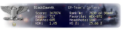 | Suicides | 1 | Headshots | 184 | Headshot / Kill | 25.66 % |