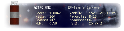 | Kills | 260 | Deaths | 447 | Kill / Death | 0.58 |