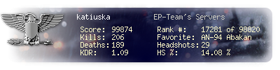 | Kill-streak | 7 | Death-streak | 14 | Team Kills | 1 |