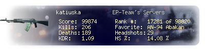 | Kills | 206 | Deaths | 189 | Kill / Death | 1.09 |