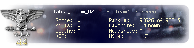 | Kill-streak | 0 | Death-streak | 0 | Team Kills | 0 |