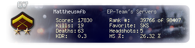 | Kill-streak | 3 | Death-streak | 8 | Team Kills | 0 |