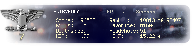 | Kill-streak | 7 | Death-streak | 10 | Team Kills | 0 |