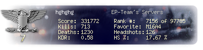 Kills | 713 | Deaths | 1230 | Kill / Death | 0.58 |