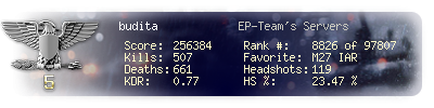 Suicides | 3 | Headshots | 119 | Headshot / Kill | 23.47 % |