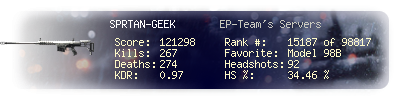 | Suicides | 2 | Headshots | 92 | Headshot / Kill | 34.46 % |