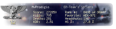 | Kills | 705 | Deaths | 281 | Kill / Death | 2.51 |