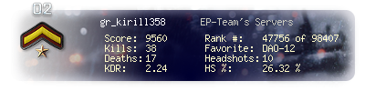 | Kill-streak | 8 | Death-streak | 3 | Team Kills | 0 |