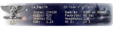 | Kill-streak | 9 | Death-streak | 16 | Team Kills | 0 |