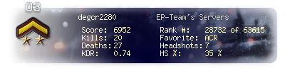 | Kill-streak | 3 | Death-streak | 6 | Team Kills | 0 |