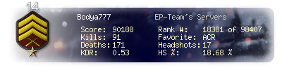 | Kill-streak | 6 | Death-streak | 14 | Team Kills | 0 |