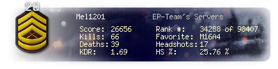 | Suicides | 3 | Headshots | 17 | Headshot / Kill | 25.76 % |